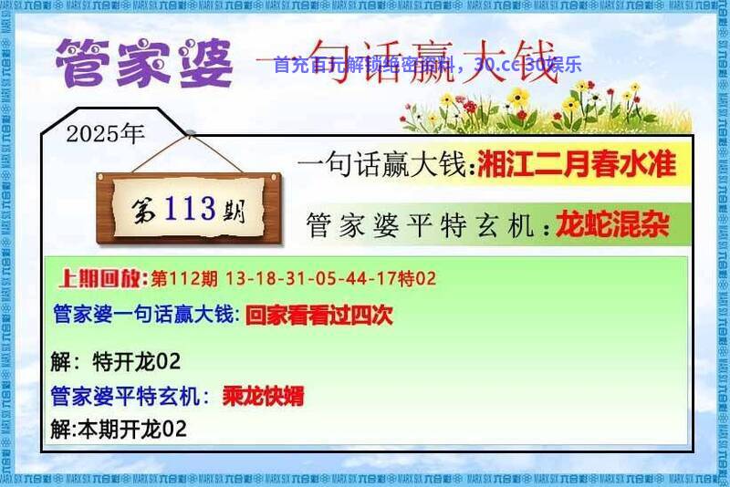 113期:两波中特【蓝波+绿波】开 蛇13